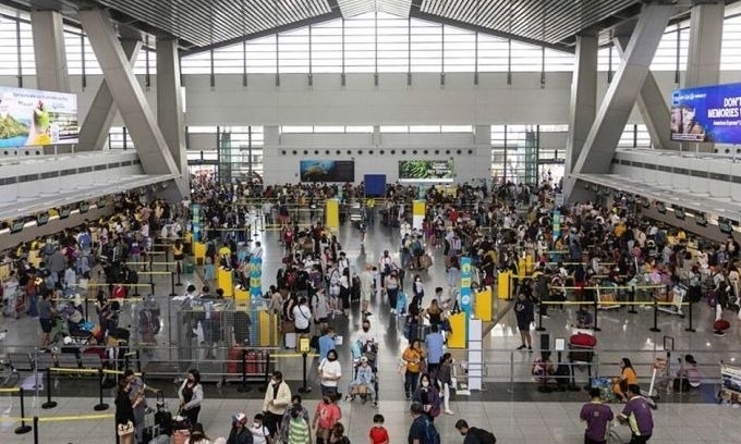 पॅसे सिटी, मेट्रो मनिला, फिलीपिन्स, 2 जानेवारी, 2023, निनोय अक्विनो आंतरराष्ट्रीय विमानतळावरील एअरलाइन काउंटरवर प्रवाशांच्या रांगा. रॉयटर्सचा फोटो
