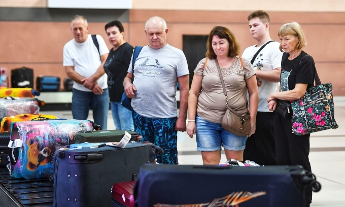 दक्षिण व्हिएतनाममधील फु क्वोक आंतरराष्ट्रीय विमानतळावर परदेशी पर्यटक. फोटो एस.जी