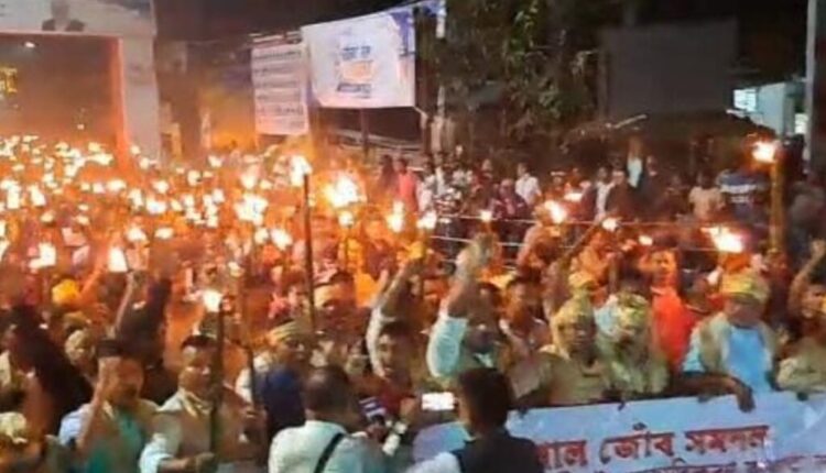 ताई अहोम युबा परिषद, आसाम (TAYPA) आणि ऑल ताई अहोम स्टुडंट्स युनियन (ATASU) यासह अनेक प्रभावशाली ताई अहोम संघटनांनी आयोजित केलेल्या या निदर्शनात आंदोलक “नो एसटी, नो रेस्ट” चे नारे देत जळत्या मशाल घेऊन शहरातून कूच करताना दिसले.