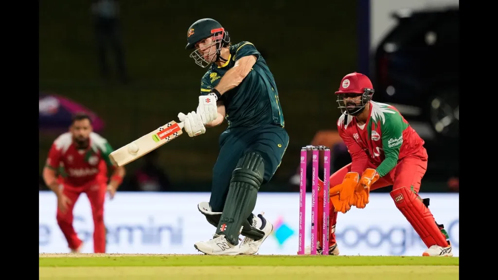 ICC T20 विश्वचषक 2026 मधील त्यांच्या शेवटच्या सामन्यात ऑस्ट्रेलियाने ओमानचा 9 गडी राखून पराभव केला. 105 धावांचा पाठलाग करताना मेन इन यलोने 9.4 षटकात पाठलाग पूर्ण केला, कर्णधार मिचेल मार्शने 33 चेंडूत 7 चौकार आणि 4 षटकारांसह 64 धावा केल्या. त्याने ट्रॅव्हिस हेडसोबत 93 धावांची भागीदारी केली, ज्याने 19 चेंडूत 32 धावा केल्या. तत्पूर्वी, ऑस्ट्रेलियाच्या गोलंदाजांनी ओमानचा डाव 16.2 षटकांत 104 धावांत संपुष्टात आणला. वासिम अली (३२) याने सहयोगी राष्ट्राकडून सर्वाधिक धावा केल्या.
