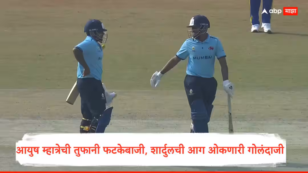 मुंबईकडून खेळणारा युवा सलामीवीर आयुष म्हात्रे सध्या जबरदस्त फॉर्ममध्ये आहे. या स्पर्धेत त्याने सातत्याने धावा काढत सर्वांचे लक्ष वेधले आहे. आधी विदर्भविरुद्ध शतक, मग आंध्रविरुद्ध शतक आणि आता छत्तीसगडविरुद्ध दमदार अर्धशतक झळकावत त्याने मुंबईच्या विजयात मोठा वाटा उचलला. छत्तीसगडविरुद्ध म्हात्रेने 140.82 चा स्ट्राइक रेट 49 चेंडूत 69* धावा केल्या. या खेळीत त्याने 3 चौकार आणि 5 षटकार लगावले.