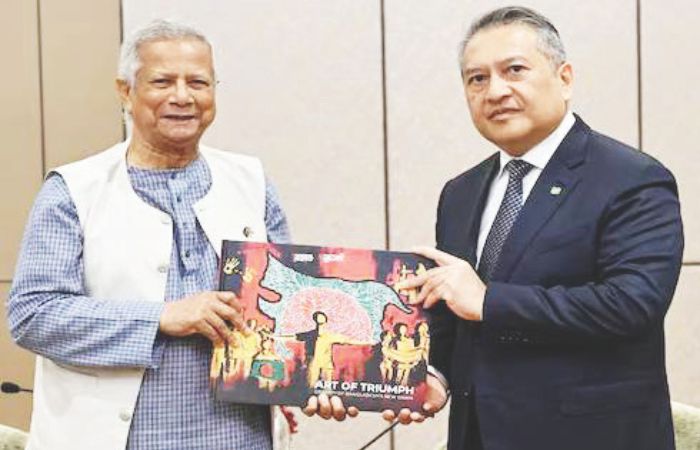 बांगलादेशातील हंगामी सरकारचे सल्लागार मोहम्मद युनूस यांनी पुन्हा हिंदुस्थानला डिवचले आहे. युनूस यांनी पाकिस्तानी लष्करातील जनरल साहीर शमशाद मिर्झा यांना एक पुस्तक भेट दिले असून त्या पुस्तकाच्या मुखपृष्ठावरील नकाशावर हिंदुस्थानच्या ईशान्येकडील राज्यांना बांगलादेशचा भाग दाखवण्यात आले आहे. त्यामुळे नवा वाद उभा राहिला आहे.