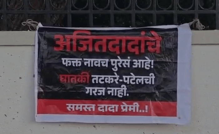 “अजितदादांचं फक्त नाव पुरेसं, घातकी तटकरे-पटेलची गरज नाही”, असे लिहिलेले बॅनर बारामतीच्या प्रशासकीय भवनाबाहेर लावण्यात आले आहेत. त्यामुळे अजित पवार गटात सर्व काही आलबेल नसल्याची चर्चा राजकीय वर्तुळात सुरू आहे.
