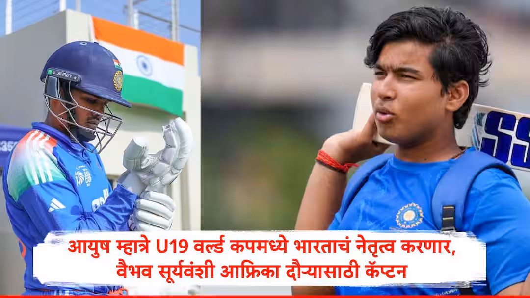 नवी दिल्ली : बीसीसीआयच्या ज्युनिअर क्रिकेट कमिटीनं दक्षिण आफ्रिका दौऱ्यासाठी भारताच्या अंडर-19 टीमची घोषणा केली आहे. भारताचा संघ दक्षिण आफ्रिकेत 3 एकदिवसीय सामन्यांची मालिका खेळेल. या मालिकेसाठी 14 वर्षांच्या वैभव सूर्यवंशीला भारताचा कॅप्टन करण्यात आलं आहे. ज्युनिअर क्रिकेट कमिटीनं 2026 च्या अंडर-19 वर्ल्ड कपसाठी भारतीय संघ जाहीर केला आहे. आयसीसी पुरुष अंडर 19 वर्ल्ड कप 15 जानेवारी ते 6 फेब्रुवारी 2026 मध्ये झिम्बॉब्वे आणि नामिबियात आयोजित करण्यात आला आहे. या वर्ल्ड कपसाठी भारताचा कर्णधार आयुष म्हात्रे असेल.