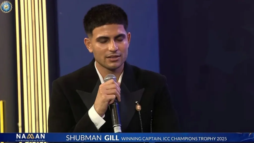येथे भारतीय क्रिकेट नियामक मंडळ (BCCI) नमन पुरस्कार 2026भारतीय क्रिकेटच्या उल्लेखनीय कामगिरीचा आनंद साजरा केला जात होता. मात्र, पुरस्कार सोहळ्यादरम्यान भारताचे वनडे आणि कसोटी कर्णधार जे शुभमन गिल मोठ्या स्क्रीनवर दिसू लागले, ग्राफिक्सने त्याला दर्शविले 2025 चॅम्पियन्स ट्रॉफीचा विजेता कर्णधार.