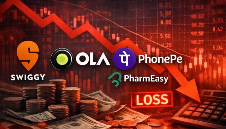 डिजिटल जगात इंटरनेटवर आधारित काम करणाऱ्या अनेक कंपन्या आहेत. जसे की कॅब सेवा देणाऱ्या कंपन्या, खाद्यपदार्थ किंवा किराणा डिलिव्हरी देणाऱ्या कंपन्या आणि वेगवेगळ्या सेवा पुरवणाऱ्या कंपन्या. गेल्या काही वर्षांत स्थापन झालेल्या या कंपन्या बऱ्याच चर्चेत राहतात. कधी या कंपन्या शेअर बाजारात प्रवेश करण्यासाठी IPO आणतात तर कधी प्रचंड गुंतवणूक करतात. एवढे करूनही अनेक प्रसिद्ध कंपन्यांचे हजारो कोटींचे नुकसान होत आहे. एका अहवालानुसार, Swiggy, Ola, PhonePe आणि FarmEasy सारखे स्टार्टअप हजारो कोटींच्या तोट्यात चालले आहेत. असे असतानाही या कंपन्या आपले काम सुरू ठेवत असूनही बंद होत नाहीत.
