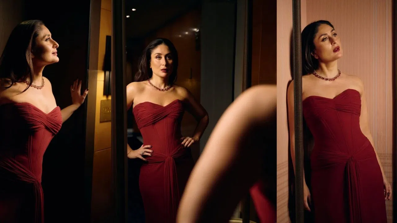 अभिनेत्रीने लाल रंगाचा गाउन घालून फिरणे पसंत केले. गोड मान असलेला ऑफ-शोल्डर गाउन आणखी एक विंटेज लुकसह फॅशन स्टेटमेंट बनवतो. इव्हेंटसाठी, करिनाने 1987 चा विक्की टिल रुच्ड गाऊन खेचला.