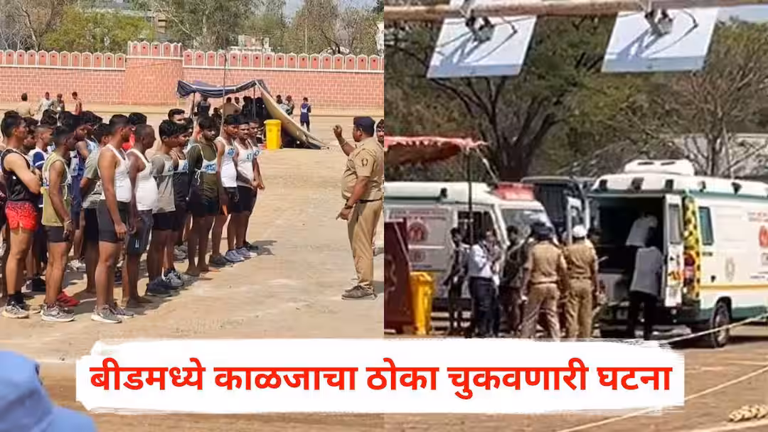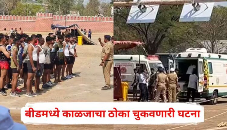 बीड क्राईम न्यूज : राज्यात सध्या मोठ्या प्रमाणात पोलीस भरतीची प्रक्रिया सुरू असून हजारो तरुण-तरुणी पोलीस होण्याचं स्वप्न उराशी बाळगून मैदानी चाचण्यांसाठी मैदानात उतरले आहेत. मात्र बीड जिल्ह्यात सुरू असलेल्या पोलीस भरती प्रक्रियेच्या पहिल्याच दिवशी एक अत्यंत दुर्दैवी आणि हळहळजनक घटना घडली असून, संपूर्ण परिसरात खळबळ उडाली आहे.