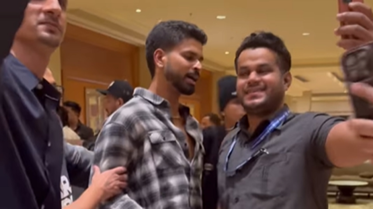 सोशल मीडियावर व्हायरल झालेल्या व्हिडिओमध्ये, सुरक्षा कर्मचारी गर्दीला दूर ठेवण्याऐवजी त्यात सामील झाले आणि त्याला सेल्फी मागितल्याने अय्यर दृश्यमानपणे प्रभावित झाले नाहीत.