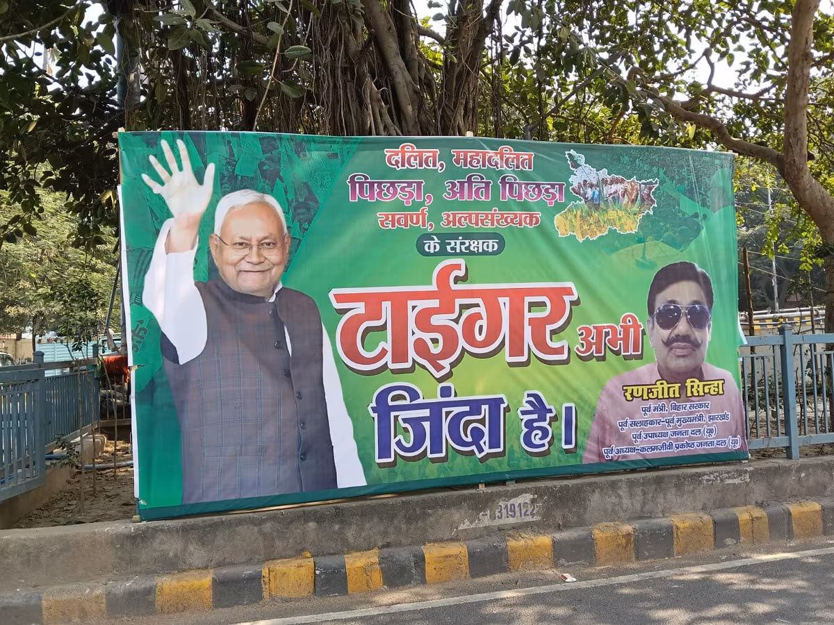 वास्तविक, बिहार निवडणूक निकाल 2025 चे निकाल येऊ लागले आहेत. मतपत्रिकेच्या मोजणीच्या वेळी एनडीएला आघाडी मिळू लागली. त्यानंतरच नितीश कुमार यांच्या निवासस्थानाजवळ आणि आता जेडीयूच्या पक्ष कार्यालयाजवळ एक पोस्टर लावण्यात आले, ज्यामध्ये टायगर जिंदा है… असे लिहिले आहे.