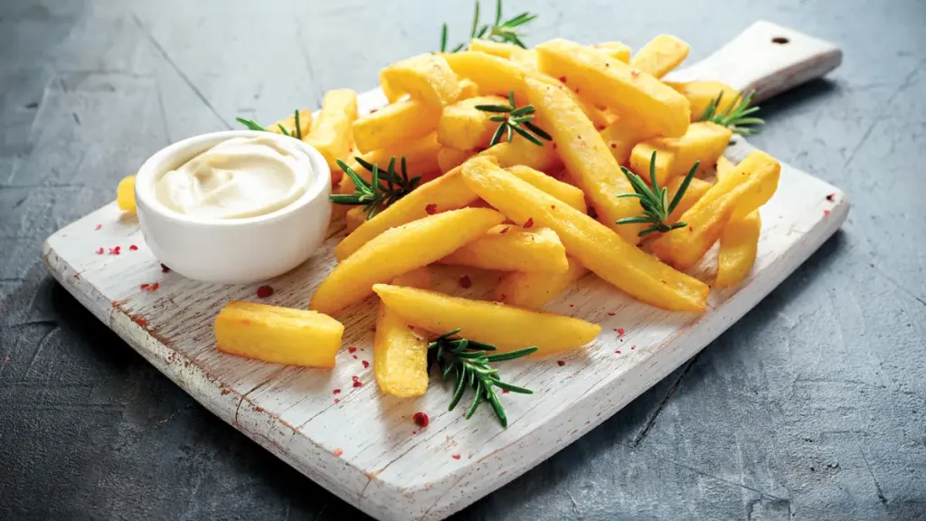 द्या. कुरकुरीत फ्रेंच फ्राईज तयार आहेत.