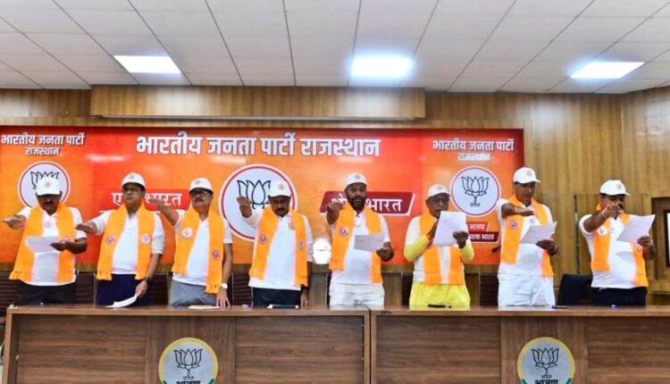 भाजपचे प्रदेश कार्यालय प्रभारी मुकेश पारीक म्हणाले की, श्रद्धांजली कार्यक्रमानंतर ‘आत्मनिर्भर भारत’च्या संकल्पाला बळ देत ‘हर घर स्वदेशी, घर घर स्वदेशी अपनाओ’ अभियानांतर्गत कार्यालयात विशेष कार्यक्रमाचे आयोजन करण्यात आले होते. प्रतिज्ञा फॉर्म भरून, भाजप कार्यालय परिवारातील सदस्यांनी स्वदेशी वस्तू वापरण्याचा संकल्प केला आणि भारताला विकसित राष्ट्र बनवण्यासाठी योगदान देण्याचे वचन दिले. स्वदेशी अंगीकारणे हे देशाच्या आर्थिक प्रगतीचे माध्यम तर आहेच, पण ते आपल्या स्वाभिमानाचे आणि राष्ट्राभिमानाचेही प्रतीक आहे. भाजप परिवार या दिशेने समाजातील प्रत्येक घटकाला प्रेरणा देईल आणि प्रत्येक व्यक्तीपर्यंत 'स्वदेशी स्वावलंबना'चा संदेश पोहोचवेल. यावेळी भाजप प्रदेश उपाध्यक्ष नारायण पंचारिया यांनी उपस्थित सर्व सदस्यांना स्वदेशी स्वीकारण्याची शपथ दिली. ते म्हणाले की, आत्मनिर्भर भारताचे ध्येय तेव्हाच शक्य आहे जेव्हा प्रत्येक नागरिक स्थानिक उत्पादनांना प्राधान्य देईल आणि देशाची अर्थव्यवस्था मजबूत करेल. पंतप्रधान नरेंद्र मोदी यांचा 'विकसित भारत'चा संकल्प प्रत्यक्षात आणण्यासाठी आगामी काळात 'हर घर स्वदेशी' जनजागृती मोहीम राज्यभर राबवली जाईल, असा निर्धार भाजप परिवारातील सदस्यांनी केला.