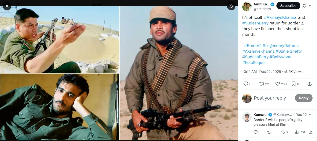 अलीकडील अद्यतनांनुसार, अक्षय खन्ना, सुनील शेट्टी आणि सुदेश बेरी मध्ये त्यांच्या मूळ पात्रांची पुनरावृत्ती करण्यासाठी सेट आहेत सीमा 2 विशेष कॅमिओ अपिअरन्सद्वारे. या हालचालीने 1997 च्या चित्रपटाशी एक मजबूत नॉस्टॅल्जिक कनेक्शन जोडले, जे बॉलीवूडच्या सर्वात प्रतिष्ठित युद्ध नाटकांपैकी एक बनले.
