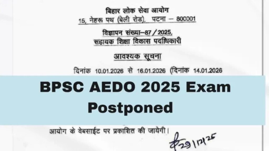 The post BPSC ने 10 ते 16 जानेवारी दरम्यान होणारी AEDO परीक्षा पुढे ढकलली, 9 लाखांहून अधिक उमेदवारांना धक्का appeared first on NewsUpdate-Latest & Live News in Hindi.