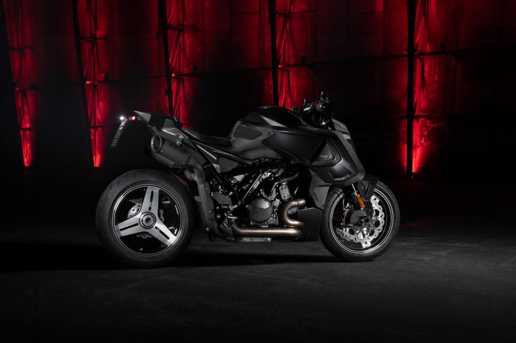 सध्याच्या KTM 1390 SUPER DUKE R EVO वर आधारित, BRABUS 1400 R सिग्नेचर एडिशन हे दोन चाकांच्या ताकदीचे आणि आधुनिक सुरेखतेचे प्रतीक आहे. हाय-एंड एक्सपोज्ड-स्ट्रक्चर कार्बन घटक असलेले नवीन WIDESTAR बॉडीवर्क ब्रँडची विशिष्ट “ब्लॅक अँड बोल्ड” डिझाइन भाषा अधोरेखित करते आणि अनन्य “मिडनाईट व्हील” बॉडी कलरला पूरक आहे.