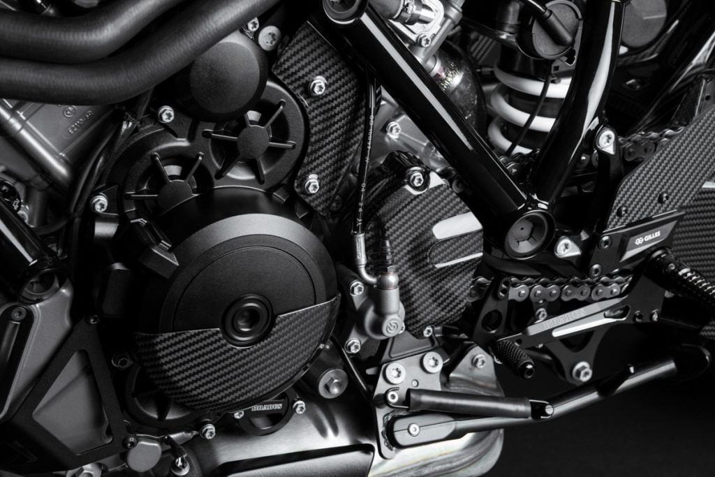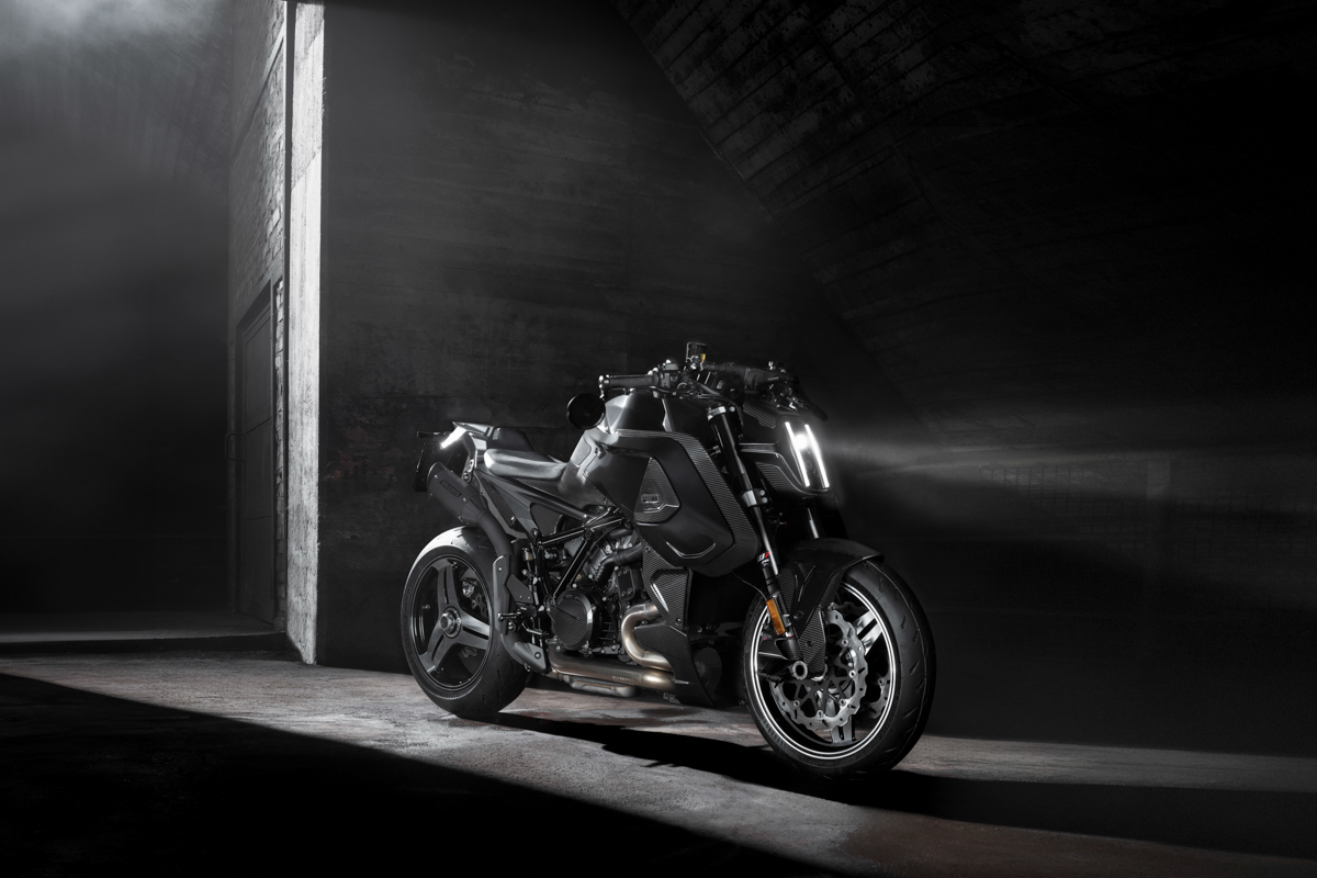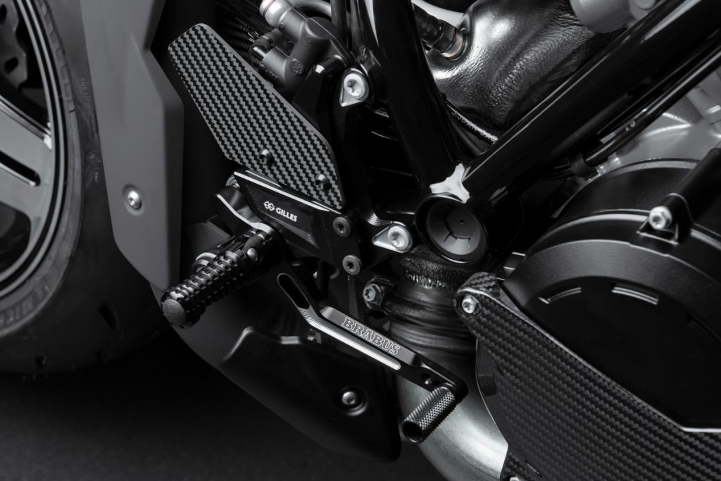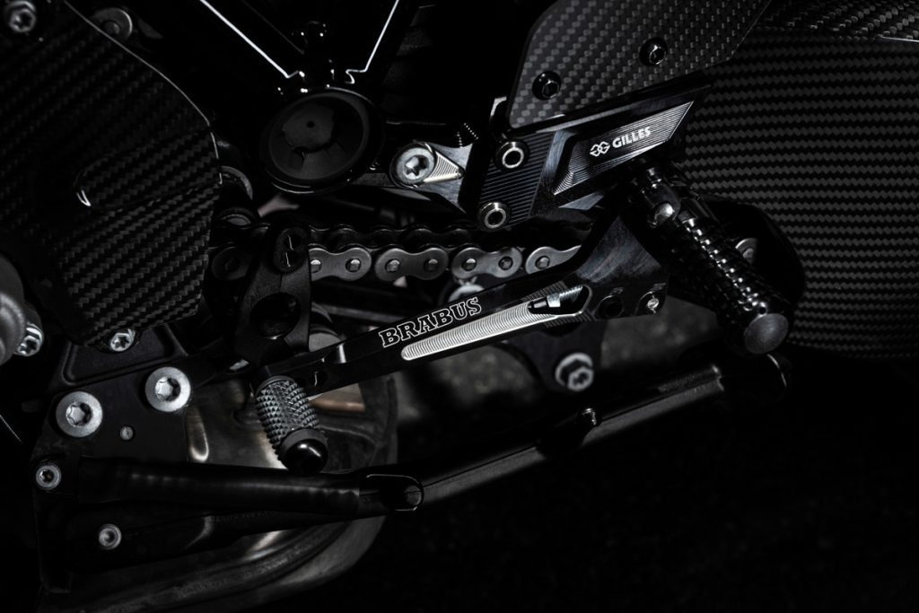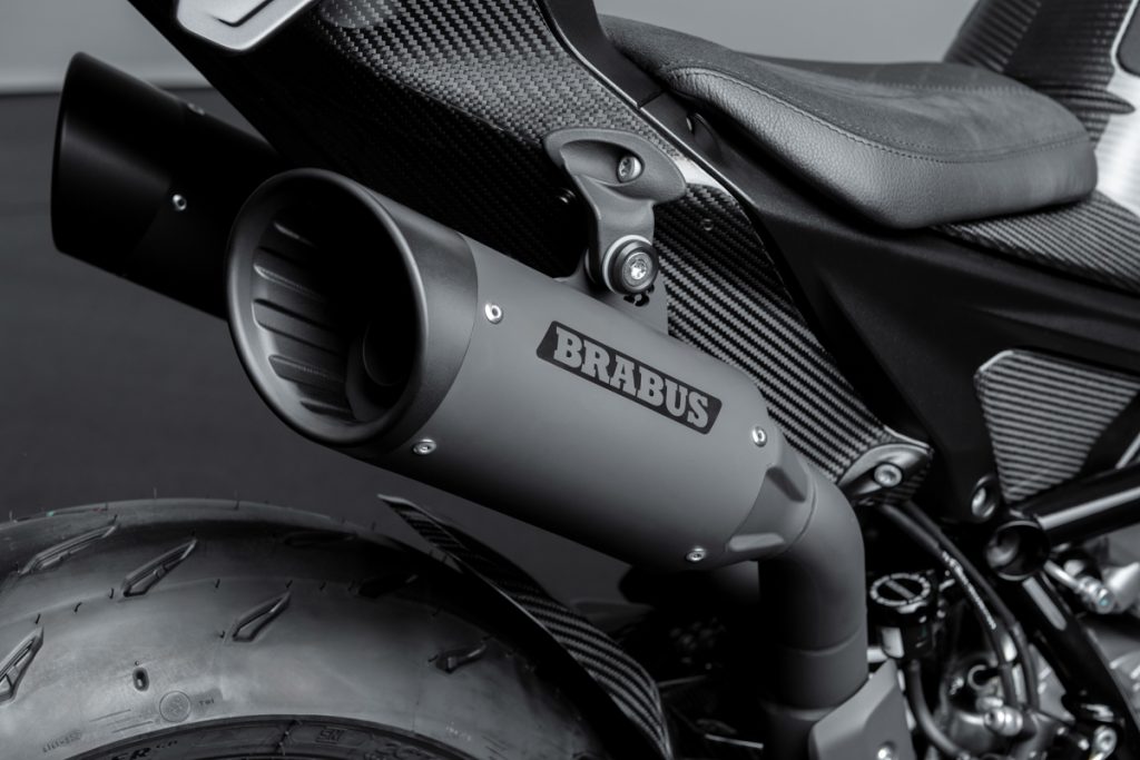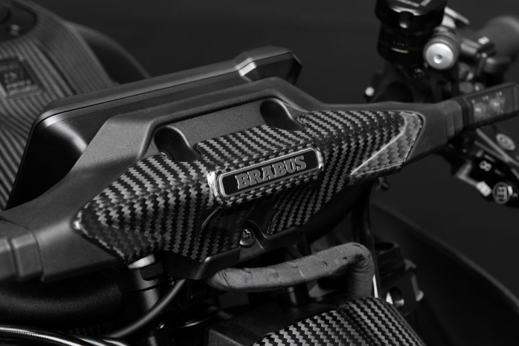 बाईकचे डायनॅमिक फ्रंट व्ह्यू ब्रॅबस कार्बन फ्रंट फेंडर आणि एलईडी हेडलाइट्ससह मास्क आणि दिवसा चालणारे एक विशिष्ट प्रकाश कॉन्फिगरेशन, ज्याचे डिझाइन BRABUS स्वाक्षरी पट्ट्यांपासून प्रेरित आहे. त्याच हाय-टेक कंपाऊंडपासून बनवलेले अतिरिक्त BRABUS घटक, जसे की WIDESTAR साइड स्पॉयलर, इंधन टाकी फेअरिंग आणि बेली पॅन, एक अद्वितीय “1-सेकंद व्वा” प्रभाव सुनिश्चित करतात.
