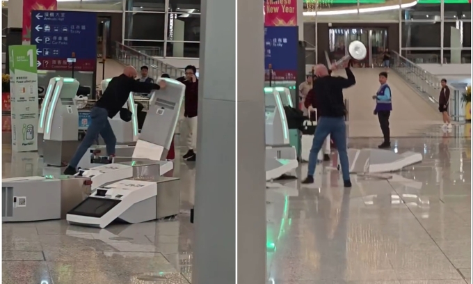 हाँगकाँग आंतरराष्ट्रीय विमानतळावरील अनेक सेल्फ-सर्व्हिस चेक-इन किऑस्कचे नुकसान केल्यामुळे एका 35 वर्षीय ब्रिटिश पर्यटकाला अटक करण्यात आली आहे.