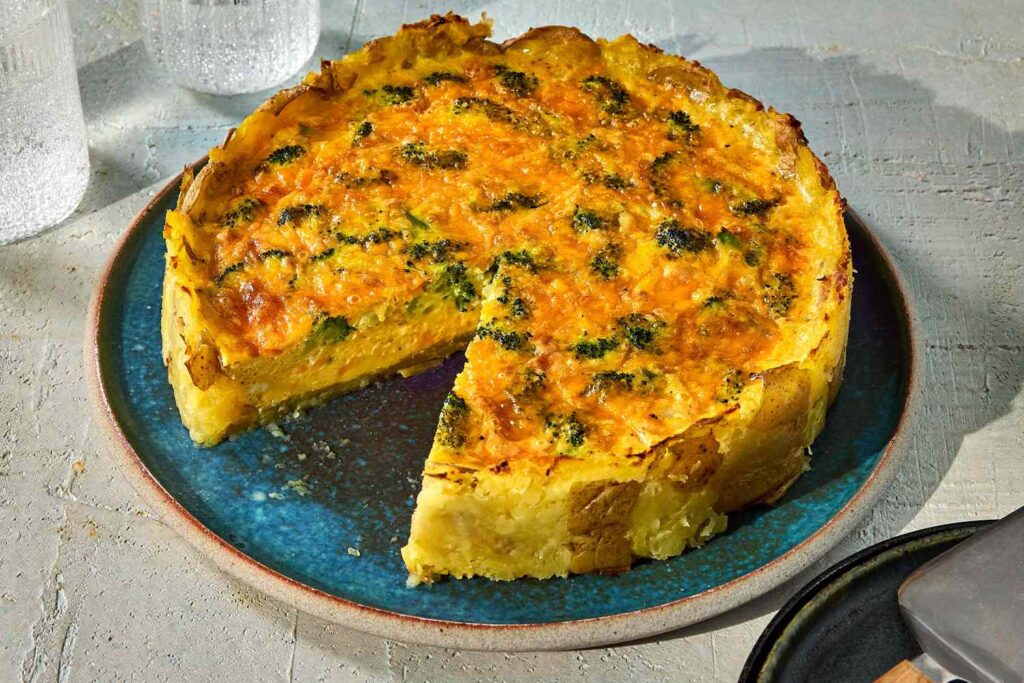 ब्रोकोली चेडर बटाटा क्रस्ट क्विचे रेसिपी