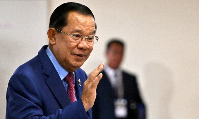 2 जून 2025 रोजी नोम पेन्ह येथे सिनेट आणि नॅशनल असेंब्ली यांच्यातील संयुक्त काँग्रेसमध्ये सहभागी होण्यासाठी कंबोडियाचे सिनेट अध्यक्ष हुन सेन हातवारे करत आहेत. एएफपीचे छायाचित्र |