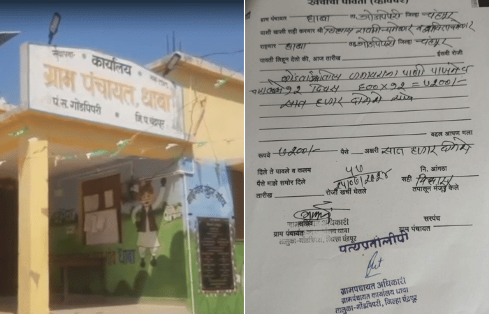 बारा वर्षांपूर्वी मृत झालेल्या व्यक्तीला कामावर ठेवून मजुरीही दिलाचा प्रकार माहितीच्या आधारे उघड झाल्याने जिल्ह्यात खळबळ उडाली आहे. चंद्रपूर जिल्हातील गोंडपिपरी तालुक्यात येणाऱ्या धाबा ग्रामपंचायत मधील घटना आहे. मृतक ला गावातील कोंडवाड्यातील जनावरांना पाणी, चारा खायला देण्याच काम देण्यात आलं आणि या कामाची ग्रामपंचायतेने मजुरी दिली दिल्याची माहिती समोर आली आहे. हा धक्कादायक आणि अकल्पित प्रकार बघून जिल्हा प्रशासन चक्राविले आहे. धाबा गावातील रहिवाशी विलास चनेकार यांचे निधन सण 2013 मध्ये झाले होते. असे असताना 2024 मध्ये त्यांना ग्रामपंचायतेने मजूर ठरवून त्यांचा नावाने 7200 रुपयाचे देयक काढले आहे. खर्चाच्या पावतीवर वाउचर क्रमांक नाही. स्वाक्षरीचा नावाने केवळ विलास असं लिहिलं आहे. त्यावर निशाणी अंगठा नाही. दरम्यान,चनेकार यांच्या मुलाने 7200 रुपये मिळाले नसल्याचे सांगितले. ग्रामपंचायतेला मिळालेल्या पंधराव्या वित्त आयोगाचा निधीत 80 लाखाचा आर्थिक अपहार झाल्याचा आरोप ग्रामपंचायतेवर होत आहे.