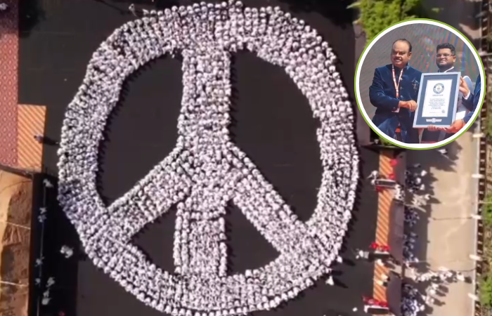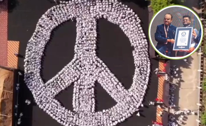 चंद्रपुरात एकाच महिन्यात दुसरा विश्वविक्रम, विद्यार्थ्यांनी साकारले शांती प्रतिकाचे चिन्ह; गिनीज वर्ल्ड रेकॉर्डमध्ये नोंद