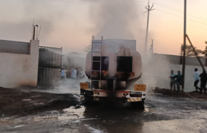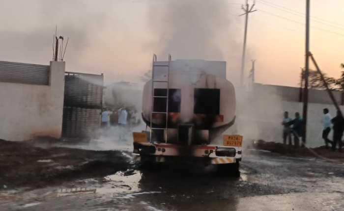 सायंकाळी च्या सुमारास ही घटना घडली आहे. या घटनेत कुठल्याही प्रकारची जीवितहानी झाली नाही. KCC कन्स्ट्रक्शन कंपनी मध्ये डिझेल पुरवठा करणाऱ्या डिझेल टँकर ला ही आग लागली असून आगीला नियंत्रणात आणण्यासाठी अग्निशमन दल घटना घटनास्थळी दाखल झाली आहे.