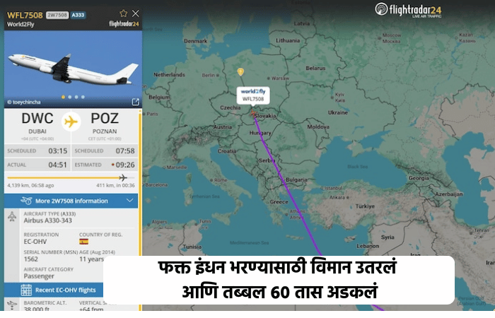 व्हिएतनामच्या फु क्वोक (Phu Quoc) येथून पोलंडमधील पोझ्नान (Poznan) कडे जाणाऱ्या ‘2W7508’ या चार्टर विमानाचा प्रवास एका थरारक अनुभवात बदलला. २८ फेब्रुवारी रोजी इंधन भरण्यासाठी हे विमान दुबईत अवघ्या काही वेळासाठी उतरले होते, मात्र मध्यपूर्वेतील युद्धामुळे ते तब्बल ६० तास तिथेच अडकून पडले. इंधन भरण्याची प्रक्रिया पूर्ण होण्यापूर्वीच, इराणने आखाती देशांवर केलेल्या क्षेपणास्त्र हल्ल्यांनंतर दुबई आंतरराष्ट्रीय विमानतळ अचानक बंद करण्यात आल्याने हा प्रकार घडला.