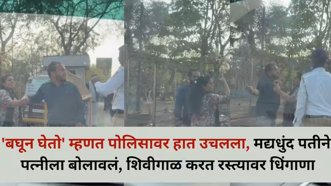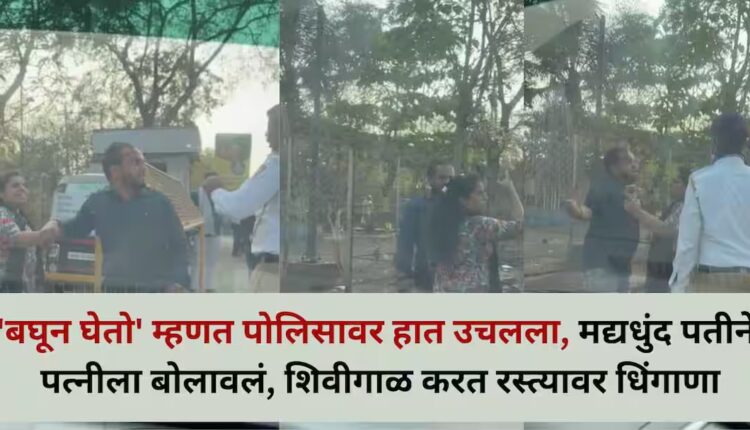 ‘बघून घेतो’ म्हणत पोलिसावर हात उचलला, मद्यधुंद पतीने पत्नीला बोलावलं, शिवीगाळ करत रस्त्यावर धिं