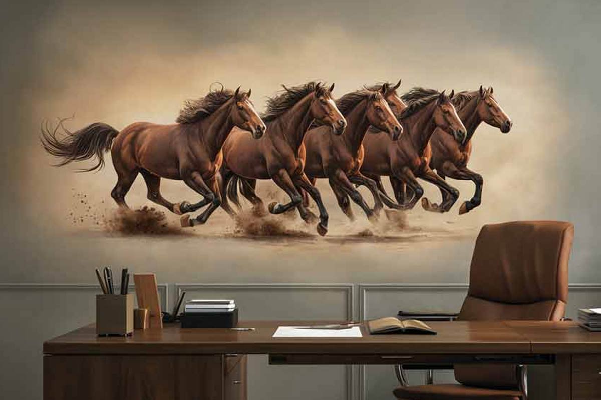सात सरपटणाऱ्या घोड्यांची प्रतिमा मुलांच्या मनातील आळस दूर करण्यासाठी प्रभावी आहे. हे चित्र प्रगतीचे प्रतीक आहे. ते वाचनाच्या टेबलासमोर ठेवल्याने मुलांच्या मनातील जडत्व तुटते. नव्या उमेदीने मन अभ्यासात बसते. त्याचप्रमाणे, सूर्योदयाची चित्रे खोलीला सकारात्मक उर्जेने भरण्यासाठी उत्तम काम करतात. उगवता सूर्य जसा अंधार दूर करतो, तसाच तो मुलामध्ये आत्मविश्वास निर्माण करण्यास मदत करतो. याशिवाय मनिषांची चित्रे भिंतीवर लावणे आवश्यक आहे. विवेकानंद किंवा विद्यासागर यांचा आदर्श रोज आपल्या डोळ्यांसमोर असायला हवा. ही चित्रे सुप्त मनाला प्रेरणा देतात.