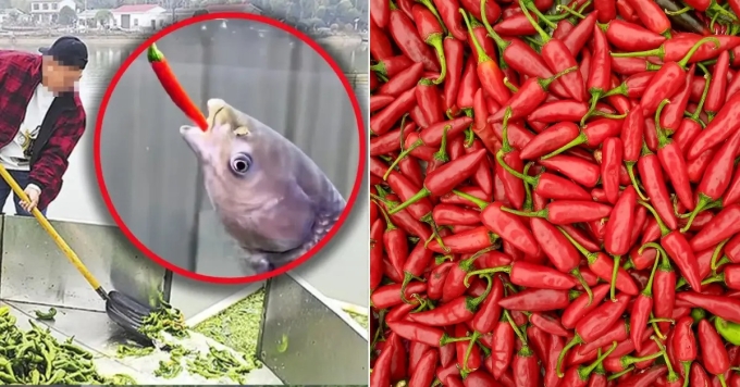 चायना फिश पॉन्ड 2,000 माशांना 5,000 किलो मिरची खाऊन त्यांची चव वाढवल्यानंतर व्हायरल