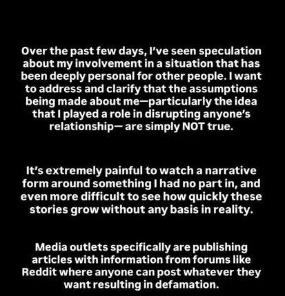 तिने लिहिले की तिच्याबद्दल केलेले गृहितक “फक्त खरे नव्हते” आणि पुराव्याशिवाय चुकीची माहिती इतक्या लवकर पसरलेली पाहणे वेदनादायक होते.