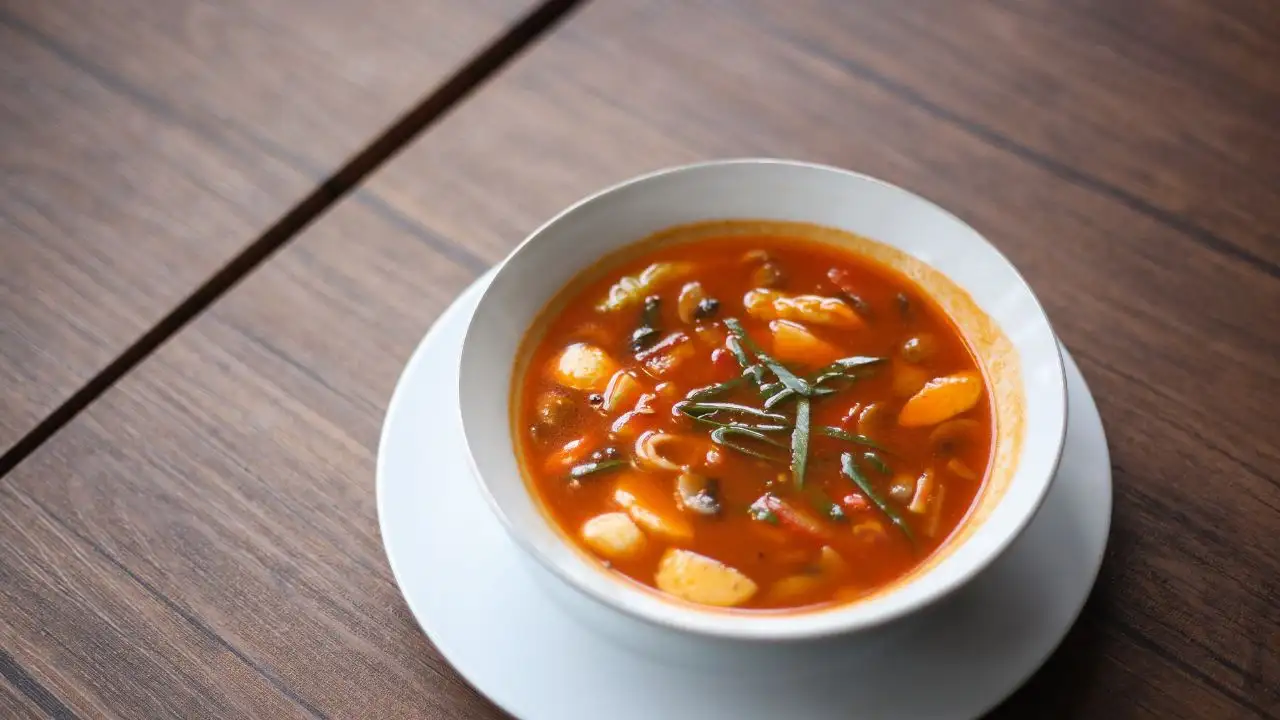 जे दुग्धव्यवसाय टाळतात त्यांच्यासाठी हा टोफू आणि भाजीपाला सूप हा एक उत्तम उच्च-प्रथिने पर्याय आहे. टोफूला हलक्या इटालियन मसाल्यांनी मॅरीनेट केल्यानंतर आणि सोनेरी होईपर्यंत तळल्यानंतर, त्यात व्हेजिटेबल स्टॉक, टोमॅटो, मशरूम, मटार आणि सिमला मिरची मिसळले जाते. त्याचा सौम्य आंबटपणा आणि भाज्यांची नैसर्गिक चव यामुळे ती संतुलित होते. त्यात असलेले टोफू सुमारे 20 ग्रॅम प्रथिने प्रदान करते. वर थोडे परमेसन घातल्याने त्याची चव आणखी वाढते.