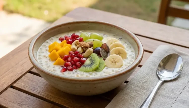 मखना, बदाम, काजू आणि खजूर कोमट दुधात 15-20 मिनिटे भिजवा, नंतर केशर आणि वेलची पूड घालून गुळगुळीत पेस्ट बनवा. एका कढईत 2 कप दूध गरम करा, ही पेस्ट घाला आणि मंद आचेवर सतत ढवळत राहा, जोपर्यंत मिश्रण थोडे घट्ट आणि मलईसारखे होईपर्यंत शिजवा. यानंतर, त्यात उकडलेला साबुदाणा घाला, चांगले मिसळा आणि आणखी काही मिनिटे शिजवा. गॅस बंद करा आणि मिश्रण थोडे थंड होऊ द्या, नंतर त्यात चिरलेली फळे घाला आणि हलके मिक्स करा. थंडगार सर्व्ह करा आणि उपवास दरम्यान या निरोगी गोडपणाचा आनंद घ्या.