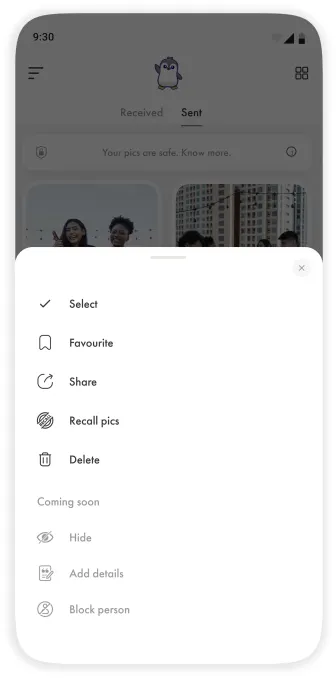 तुम्ही त्यांना झटपट न पाठवल्यास, ॲप 24 तासांनंतर त्यांना ते फोटो आपोआप पाठवेल. त्यापूर्वी, तुम्ही पाठवत असलेल्या फोटोंचे तुम्ही पुनरावलोकन करू शकता आणि काही न पाठवण्याचे निवडू शकता. फोटो तुमच्या डिव्हाइसवर PicSee च्या स्टोरेजमध्ये स्थानिकरित्या संग्रहित केले जातात. तुम्ही ते तुमच्या डिव्हाइस स्टोरेजमध्ये डाउनलोड करणे निवडू शकता. वापरकर्ते फोटो पाठवल्यानंतर ते रिकॉल करू शकतात, जे रिसीव्हरच्या शेवटी असलेल्या PicSee मधून प्रतिमा काढून टाकतात.