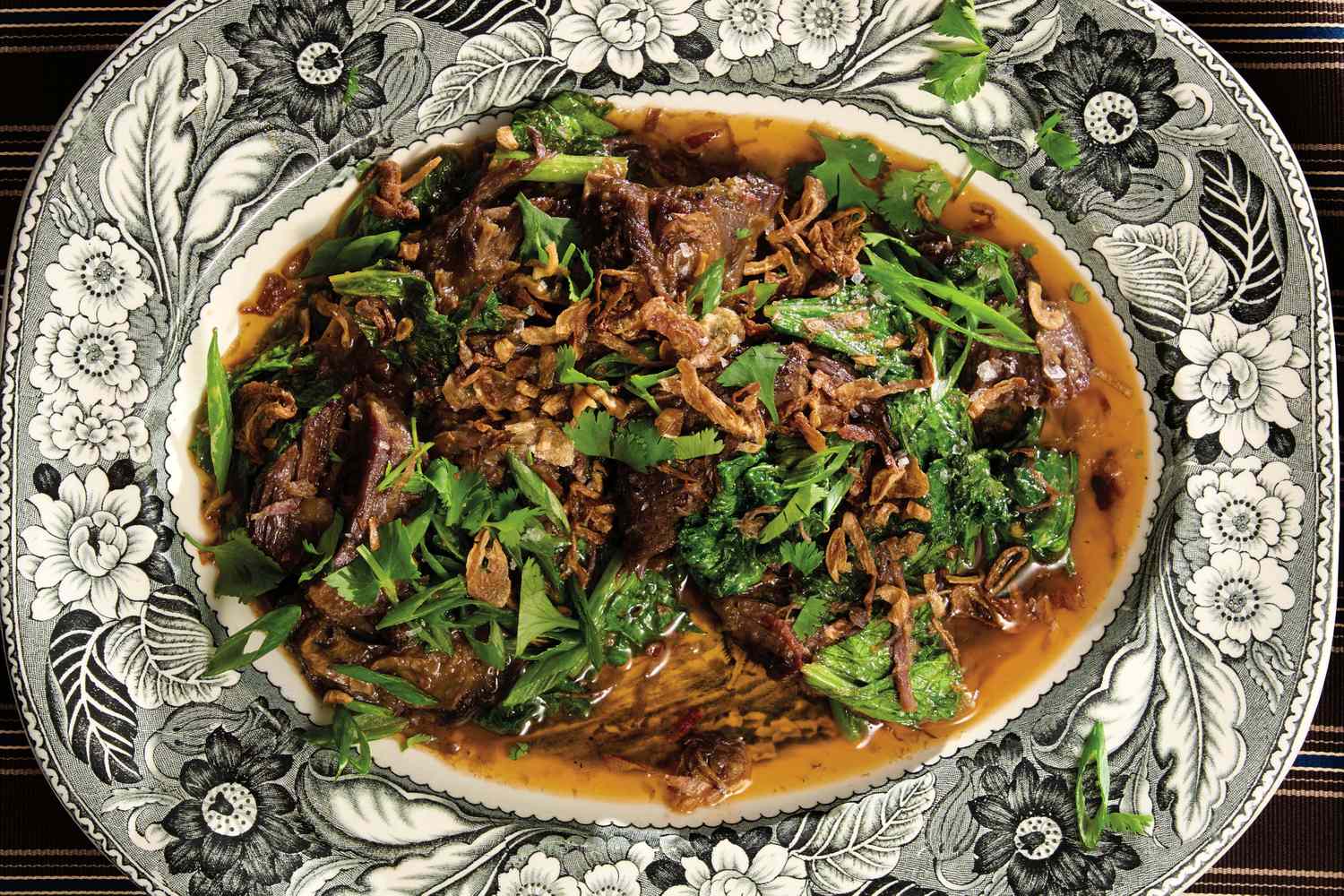- ब्रेझमध्ये आले, नारळ आणि चुना यापासून बनवलेल्या स्तरीय चव प्रोफाइलसह काटा-टेंडर गोमांस मिळते.