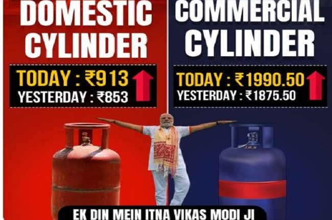 एलपीजीच्या किमतीत प्रचंड वाढ झाल्याबद्दल काँग्रेस म्हणाली- मोदी असतील तर शक्य आहे, मोदीजी एका दिवसात एवढा विकास करू शकतात.