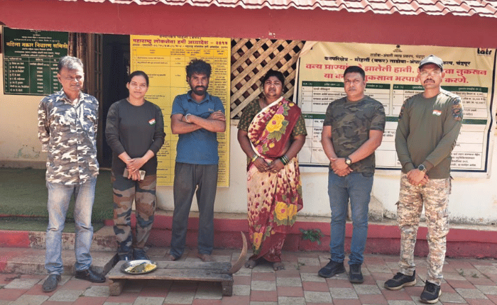 इरई धरण परिसरात वन्यजीवांची शिकार करून त्याचे मांस शिजवून खात असलेल्या वन दाम्पत्याला विभागाने रंगेहाथ पकडले. या प्रकरणी वन्यजीव संरक्षण कायद्यान्वये गुन्हा दाखल करण्यात आला आहे. ज्योती शैलेश घंटसाल (35) व त्यांचे पती शैलेश नोमनाद्री घंटसाल (38) असे अटकेतील आरोपींचे नाव असून ते आंध्रप्रदेशातील रहिवासी आहे. वन्यजीवाची शिकार करून मास शिजवित असल्याची माहिती वनविभागाला मिळताच वनविभागाच्या कर्मचाऱ्यांनी घरी धाड टाकली. यावेळी ज्योती घंटसाल व तिचा पती शैलेश घंटसाल हे फ्लॅप शेल टर्टल या संरक्षित कासवाला पकडून त्याची भाजी शिजवून खात असताना आढळून आले. पोलिसांनी दोघांनाही अटक केली. ही कारवाई वनपरिक्षेत्र अधिकारी संतोष थिपे यांनी केली.