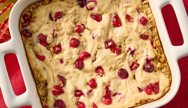 क्रॅनबेरी चीजकेक बेक्ड ओट्स