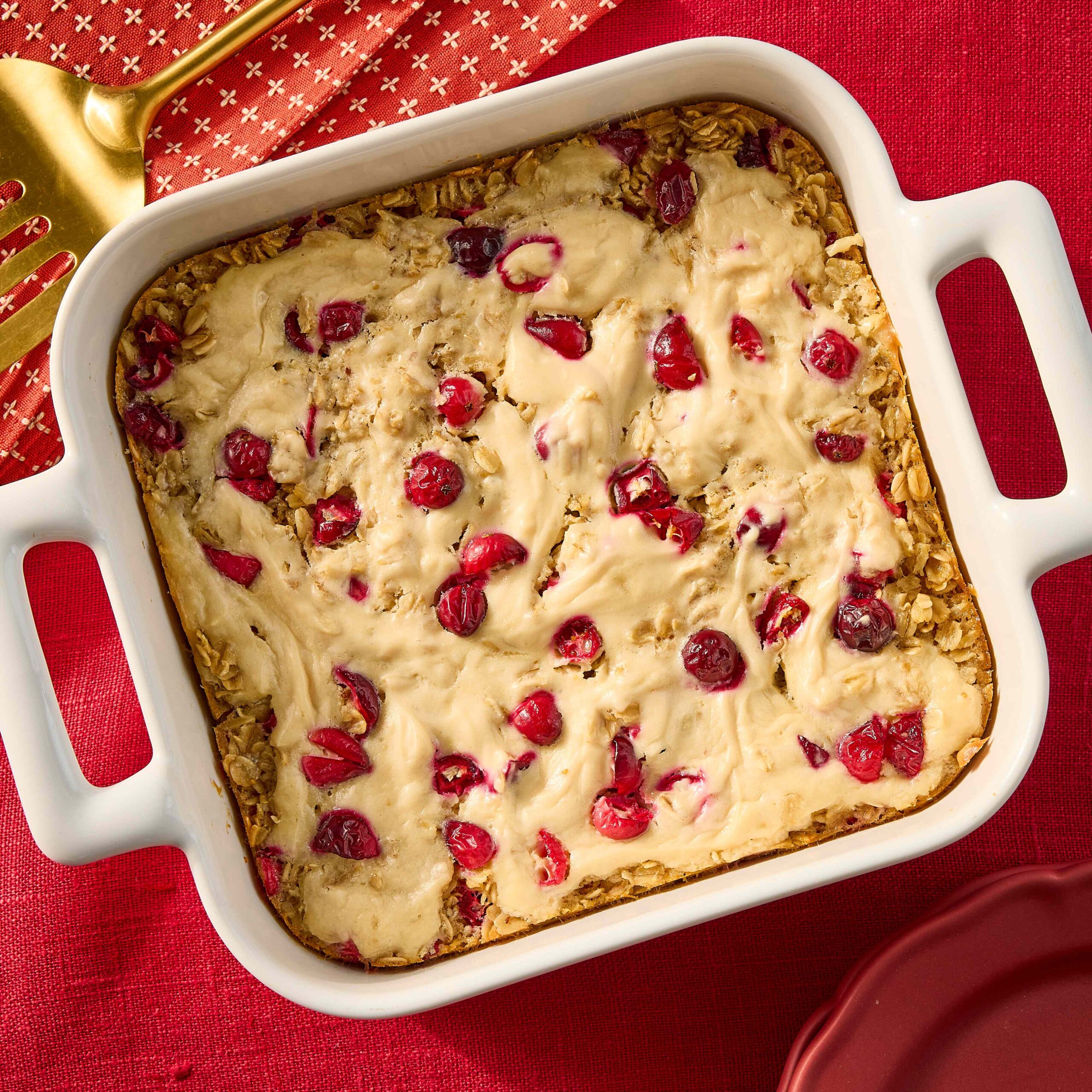 आमचे क्रॅनबेरी चीजकेक बेक्ड ओट्स न्याहारी आणि मिष्टान्न यांच्यातील ओळ उत्तम प्रकारे चालवा. हृदयासाठी निरोगी ओट्स प्रथिनेयुक्त अंडी आणि दुधाने बनवलेल्या हलक्या गोड व्हॅनिला कस्टर्डमध्ये भिजवले जातात. अँटिऑक्सिडंट-पॅक केलेले क्रॅनबेरी या भाजलेल्या डिशमध्ये प्रत्येक चाव्याव्दारे एक तिखट झिप देण्यासाठी जडलेले असतात आणि चीजकेक चटकदार क्रीमयुक्त पोत वाढवते. तुमच्या क्रीम चीज, घटक बदलणे, मसाले जोडणे आणि बरेच काही यामधून सर्वोत्तम कसे मिळवायचे याबद्दल आमच्या तज्ञांच्या टिप्स वाचत रहा.