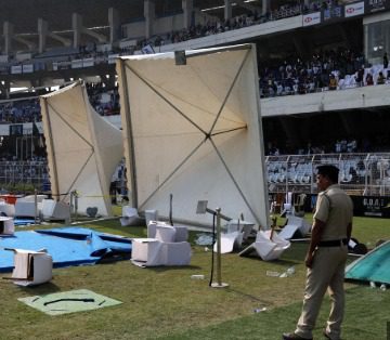 यामुळे संतप्त झालेल्या काही चाहत्यांनी स्टेडियमच्या आत आणि बाहेर निषेध केला. तोडफोड सुरुवात केली. खुर्च्या तुटल्या, बॅरिकेड्सचे नुकसान झाले तर काही ठिकाणी पोलिसांशी झटापटही झाली. काही वेळातच वातावरण तंग झाले.