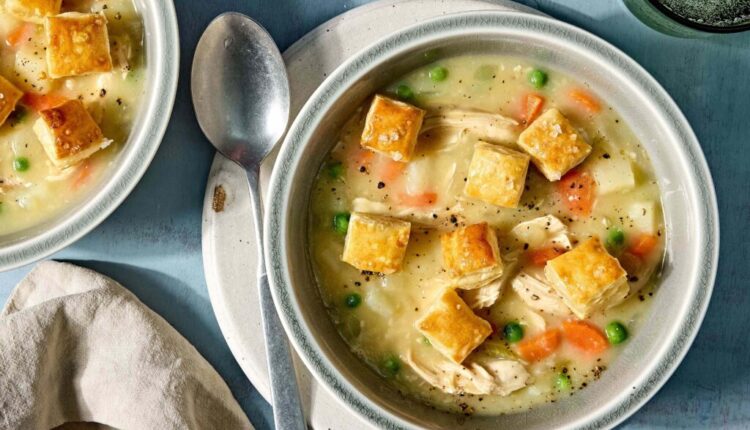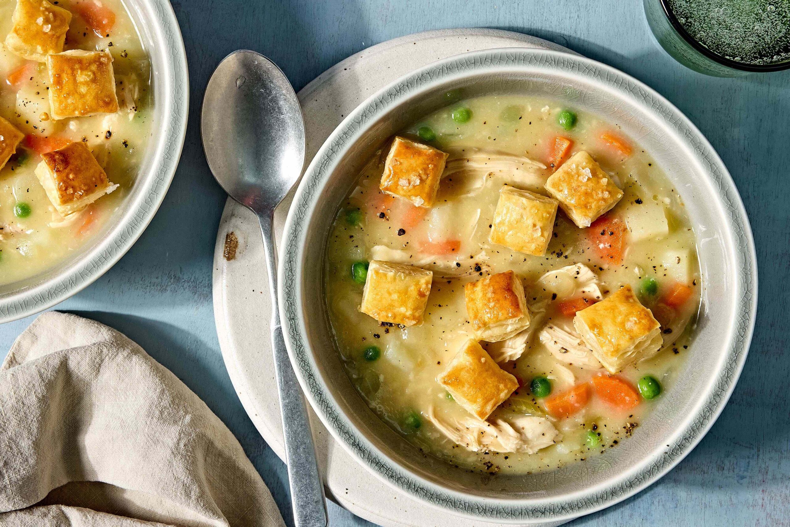 - त्या पॉटपी फीलसाठी पफ पेस्ट्री स्क्वेअर किंवा उबदार बिस्किटे बरोबर सर्व्ह करा.