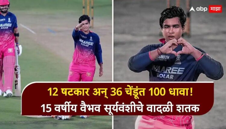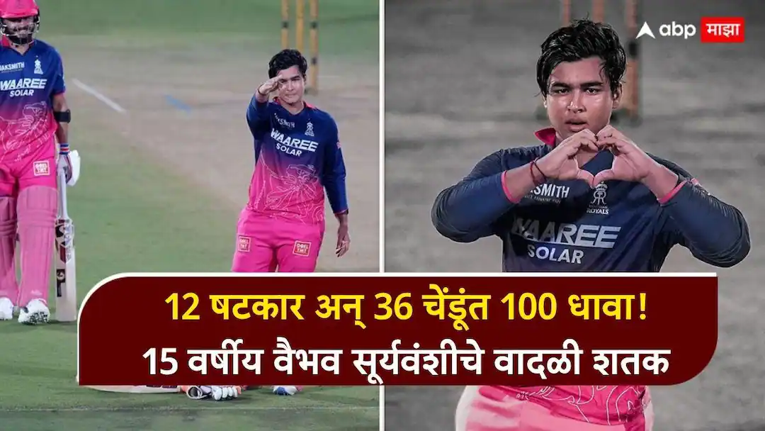 Vaibhav Sooryavanshi News : 12 षटकार अन् 36 चेंडूंत 100 धावा! 15 वर्षीय वैभव सूर्यवंशीचे वादळी शतक; अनोख्या’ सेलिब्रेशनने सर्वांना कोड्यात पाडलं, नेमकं काय केलं?