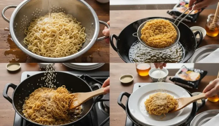 हनी फ्राइड नूडल्स: आत्तापर्यंत तुम्ही फक्त खारट किंवा मसालेदार नूडल्स खाल्ले असतील तर आता गोड सरप्राईजसाठी तयार व्हा! हनी फ्राईड नूडल्स ही एक अशी डिश आहे जी प्रत्येक चाव्यात कुरकुरीतपणा आणि गोडपणाचा अद्वितीय संयोजन देते. हे जितके मनोरंजक वाटते तितकेच खायलाही रुचकर… बाहेरून कुरकुरीत, आतून किंचित गोड आणि वर मधाचा सोनेरी थर! संध्याकाळची पार्टी असो किंवा वीकेंडचा मूड, ही रेसिपी प्रत्येक प्रसंगाला गोड करेल. ही डिश बनवणे तुम्हाला वाटते तितके अवघड नाही. फक्त काही सोप्या पायऱ्या आणि काही घटकांसह, तुम्ही घरी रेस्टॉरंट-शैलीतील मध नूडल्स बनवू शकता.