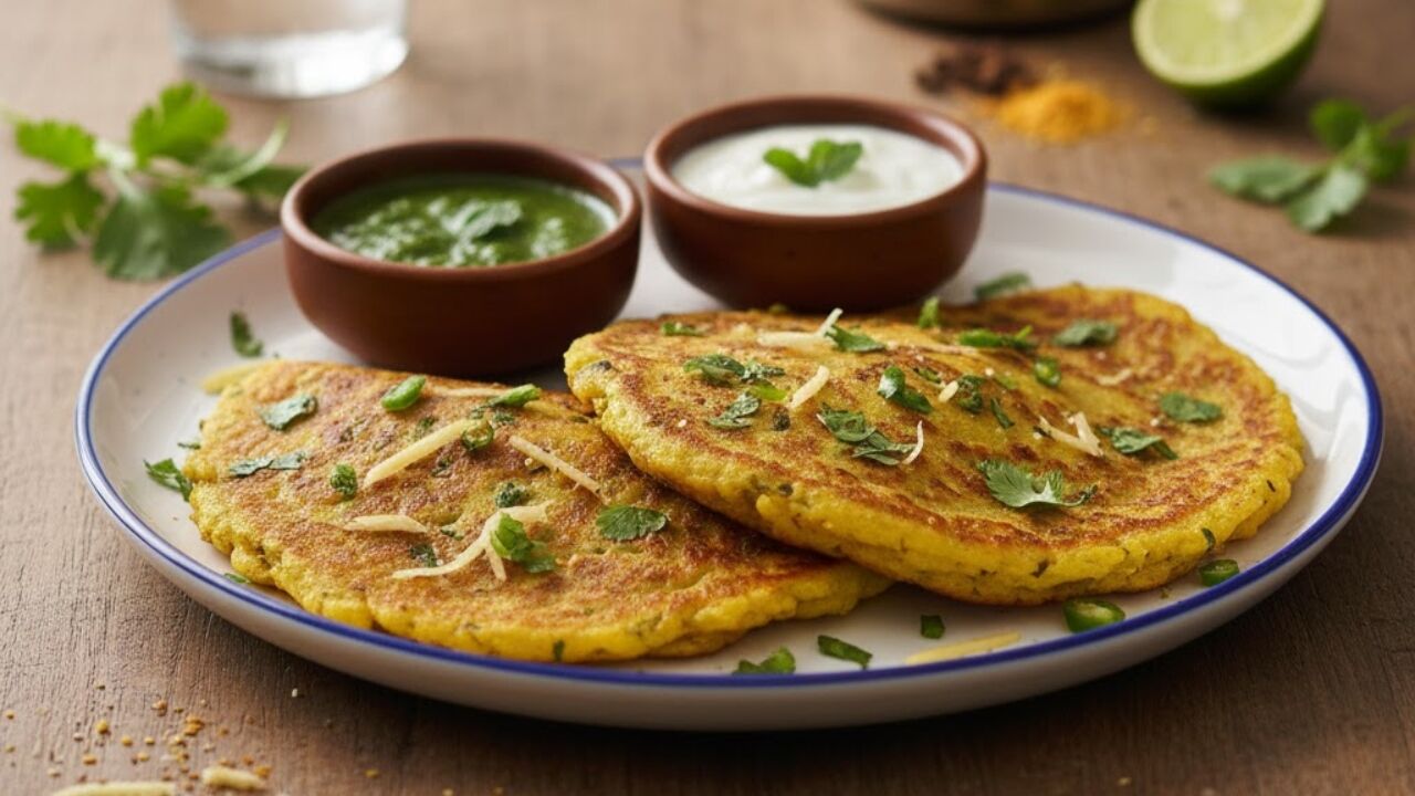 कुरकुरीत मूग डाळ चिला (मसूर पॅनकेक्स)