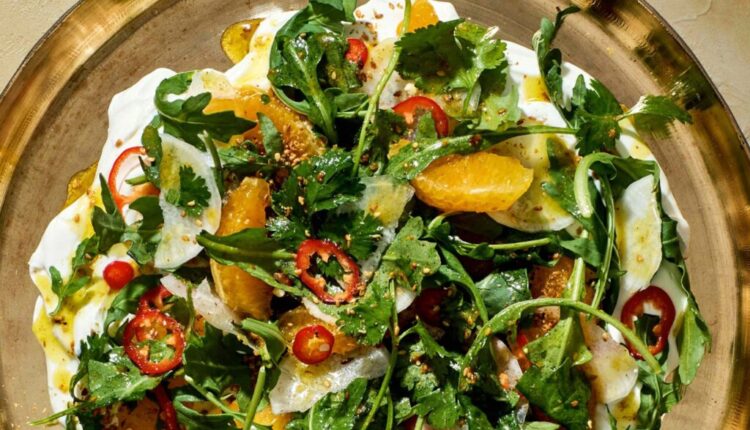 तीळ-जिरे ड्रेसिंगसह डायकॉन आणि ऑरेंज सॅलड