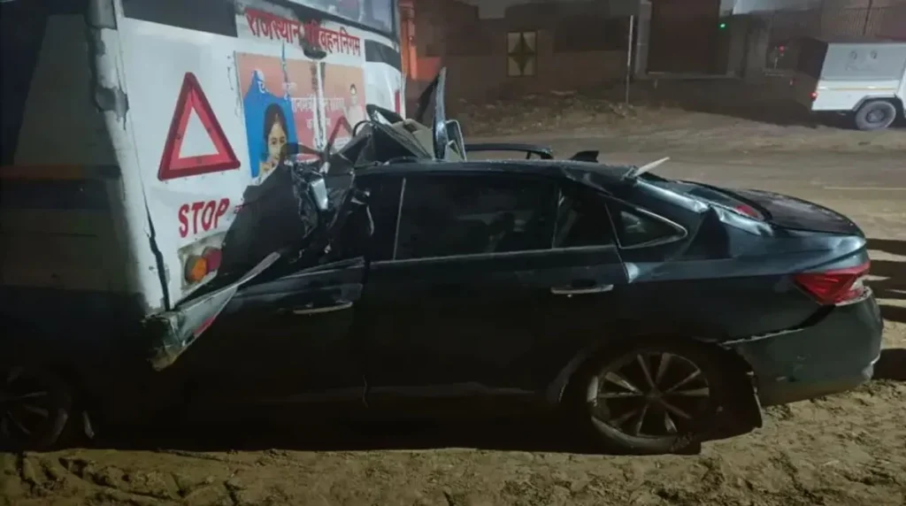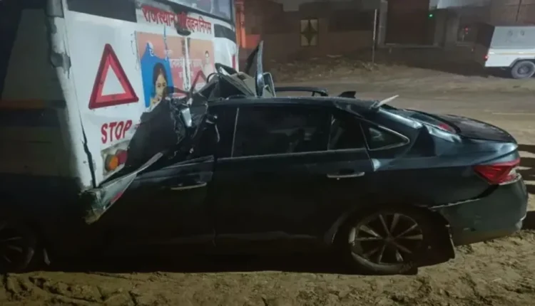 भरधाव कारची रोडवेज बसला धडक