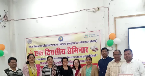 DIET प्राचार्य/उपशिक्षण संचालक मुकुल आनंद पांडे यांच्या मार्गदर्शनाखाली जिल्हा शिक्षण आणि प्रशिक्षण संस्था (DIET) सोनभद्र येथे बालपणीची काळजी, महत्त्व आणि शिक्षणाची आव्हाने या विषयावर एक दिवसीय चर्चासत्र आयोजित करण्यात आले होते. या चर्चासत्रात जिल्ह्यातील प्रत्येक विकास गटातील 08 प्राथमिक शाळांमधील शिक्षक आणि DIET प्रवक्ते सहभागी झाले होते.