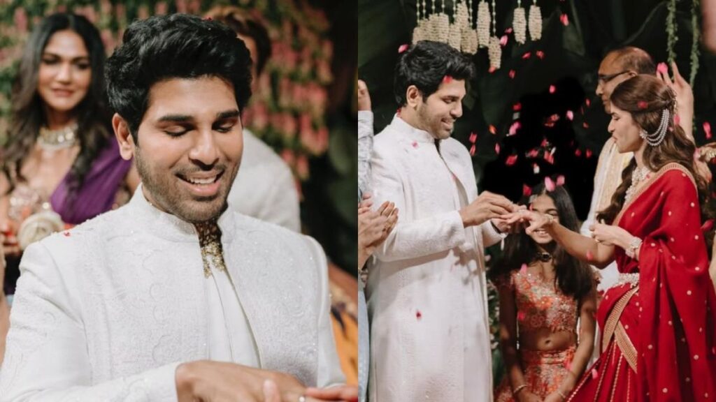 अल्लू सिरिशने 31 ऑक्टोबर रोजी हैदराबादमध्ये रोमँटिक आउटडोअर एंगेजमेंटची योजना आखली होती, परंतु चक्रीवादळ मंथाने त्याच्या बाह्य व्यस्ततेची योजना उधळली. हे लक्षात घेऊन, घरातील सदस्य आणि जवळच्या मित्रांच्या उपस्थितीत सिरिशने आपल्या मंगेतराला दिलेली अंगठी मिळाली. अभिनेत्याने X वर समारंभाचे फोटो शेअर केले, ज्यामध्ये दोन्ही जोडपे खूप सुंदर दिसत होते. अल्लू सिरिशने पांढरा कुर्ता सेट घातला होता आणि त्याची मंगेतर नयनिकाने लाल रंगाचा लेहेंगा घातला होता. अभिनेत्याने कॅप्शनमध्ये लिहिले- 'शेवटी आणि आनंदाने माझ्या आयुष्यातील प्रेमाशी निगडित नयनिका.'