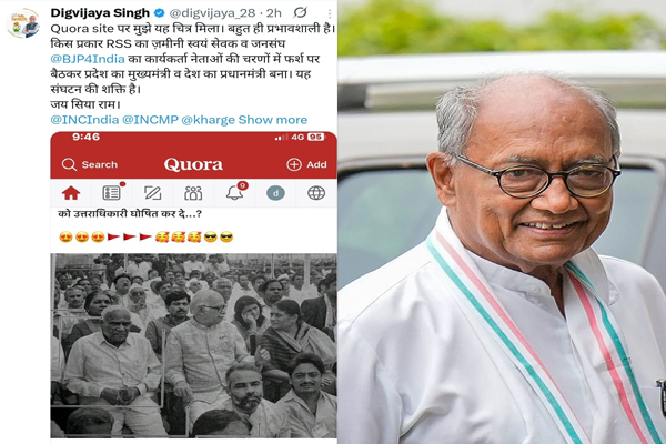 डिजिटल डेस्क- मध्य प्रदेशचे माजी मुख्यमंत्री आणि काँग्रेसचे ज्येष्ठ नेते दिग्विजय सिंह यांनी शनिवारी सोशल मीडियावर एक जुना फोटो शेअर करून राजकीय खळबळ उडवून दिली. हे छायाचित्र पंतप्रधान नरेंद्र मोदी यांचे असल्याचे सांगितले जात असून, त्यात ते जमिनीवर बसलेले दिसत आहेत. दिग्विजय सिंह यांनी या चित्राचे वर्णन राष्ट्रीय स्वयंसेवक संघ (आरएसएस) आणि भारतीय जनता पक्ष (भाजप) यांच्या संघटनात्मक शक्तीचे प्रतीक असल्याचे केले आहे. दिल्लीत काँग्रेस कार्यकारिणीची (CWC) महत्त्वाची बैठक पार पडल्याच्या वेळी हे पद आले आहे. सोशल मीडिया प्लॅटफॉर्मवर दिग्विजय सिंह यांनी पोस्टमध्ये म्हटले आहे की, “आरएसएसचा तळागाळातील सेवक आणि जनसंघ-भाजपचा कार्यकर्ता नेत्यांच्या पायाशी बसून राज्याचा मुख्यमंत्री आणि देशाचा पंतप्रधान कसा झाला.