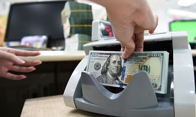 नोव्हें. 14, 2022 रोजी हनोई येथील एका बँकेत कर्मचारी यूएस नोटा मोजत आहे. VnExpress/Thanh Tung द्वारे फोटो